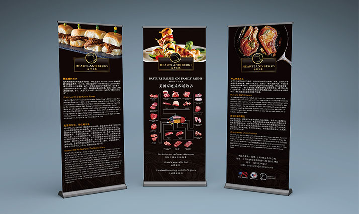 對于生肉類品牌的設計,這還是第一次接觸,所有的豬肉全部來自美國農場,美國農場有一個統一的特色,紅色的房子,白色的屋頂。真的搞不懂為什么房頂要弄成白色的,綠色的不是更好,最起碼從天空看下來能和草地莊家連成一體。還有一個糧倉,我看著更像是國內的高壓水桶,還有一些機械設備,這些都是農場最基本的配置,然后就是無邊的莊家和果園,很是壯觀,他們養殖的黑豚豬都是養在木頭的圍欄里,這個木頭的圍欄很大,所以,這些豬屬于散養狀態。就像小時候家里養的豬,都屬于散養狀態的。你可能難以相信,這里豬伙食很好,幾乎不喂食豬飼料,以農場的谷物和蔬菜還有水果為主。黑豚豬是一個特殊的品種,四只豬蹄子是白色的,豬的嘴巴也是白色的,還有尾巴,這是這個品種的特征。其肉質帶有大理石的花紋,就像牛肉的花紋,口感你吃了才能感受到。