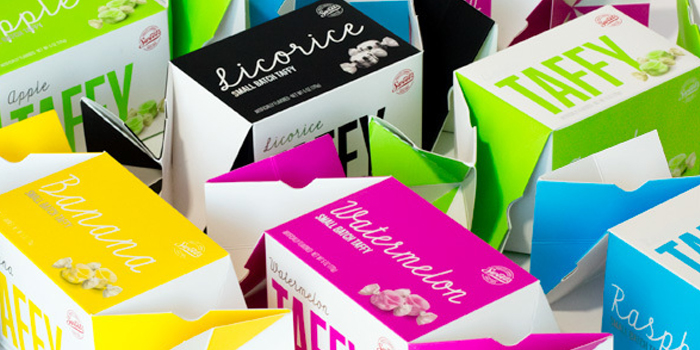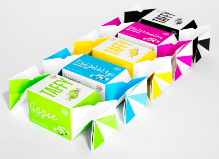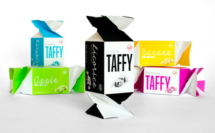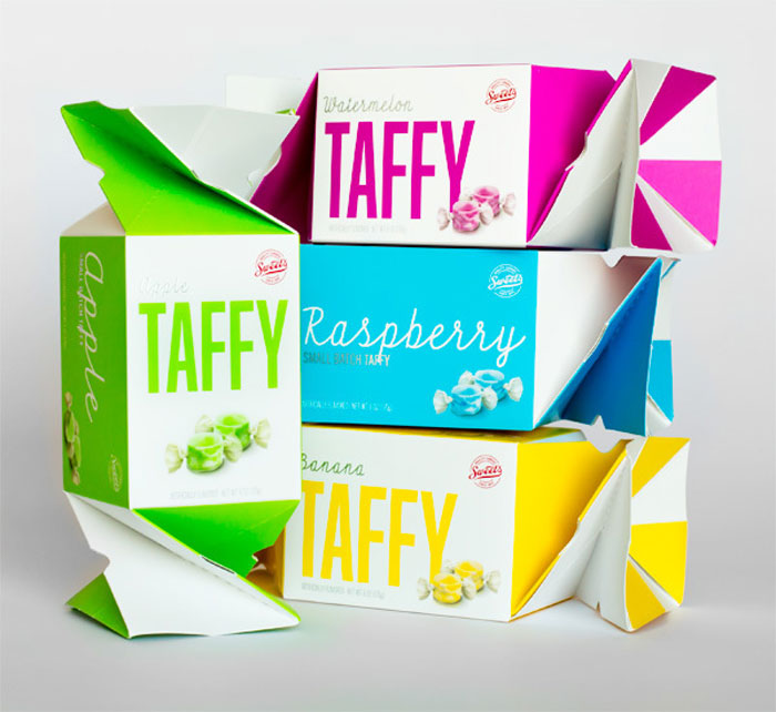 “我幫助設計了甜蜜的糖果公司他們回來刷新或更像一個完整的檢修第一太妃糖麻花框后七年。問的是更新的扭線有一個更現代的外觀,顏色將發揮更大的作用。甜的想要的東西,不僅需要注意的零售貨架上,但也工作與禮品籃業,這往往是倍編譯的產品包裝和顏色的基礎上。有這樣一個獨特的達林,我們決定讓盒子的側面定義彩色面板起著很大的作用。與三個主要的顯示面板,零售商可以堆疊的盒子,以創建一個引人注目的演示。道具到客戶端。當一個糖果制造商要求你開發一種他們將與產品相匹配的包裝時,它是多么的酷呢?